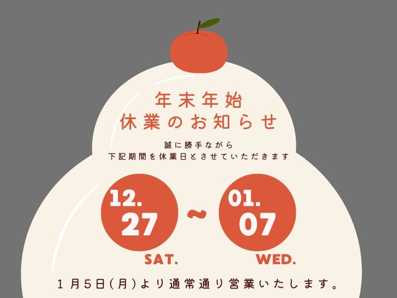 年末年始休業期間:2025年12月27日(土)~2026年1月7日(水)
