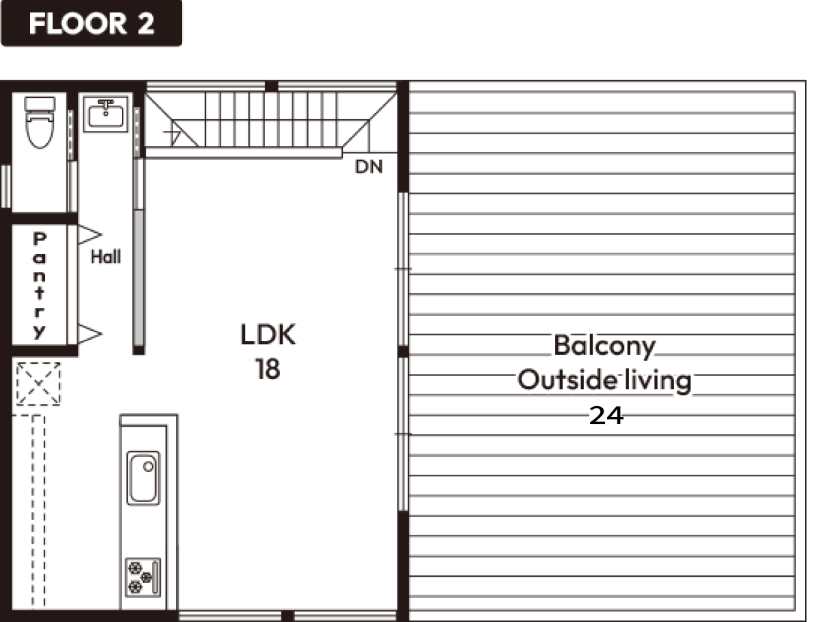 2 バルコニーとLDKが一体化した