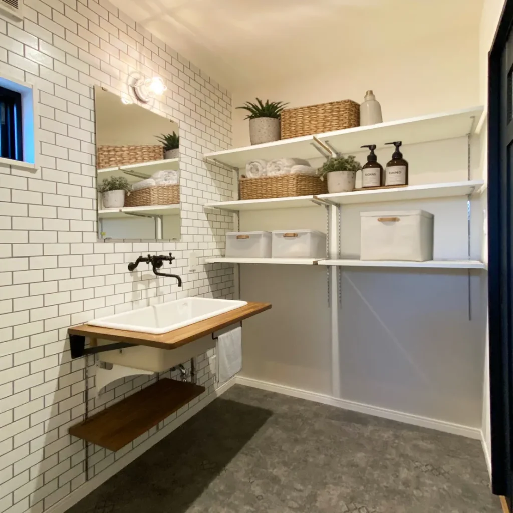 洗面はインスタグラムから見つけられたもので、TOTOの病院用流しは深くて大容量なので手洗いの洗濯も出来る そうです。